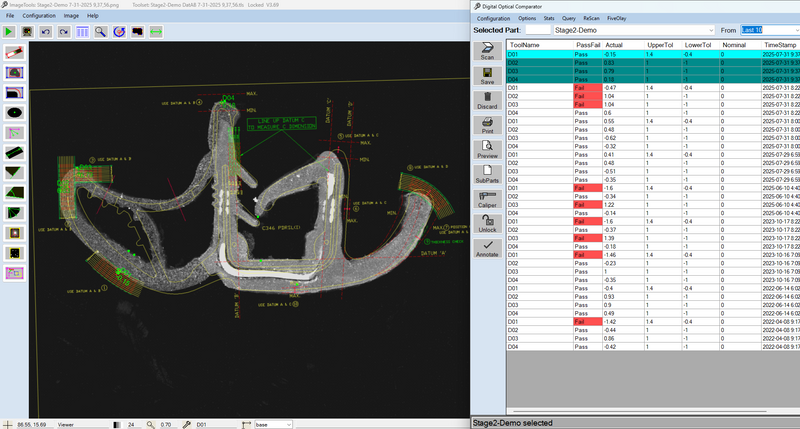Quality engineers create digital toolsets that provide the blueprints for inspection scanners to correctly measure critical angles, lengths, and features based on different alignments (datums).